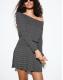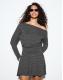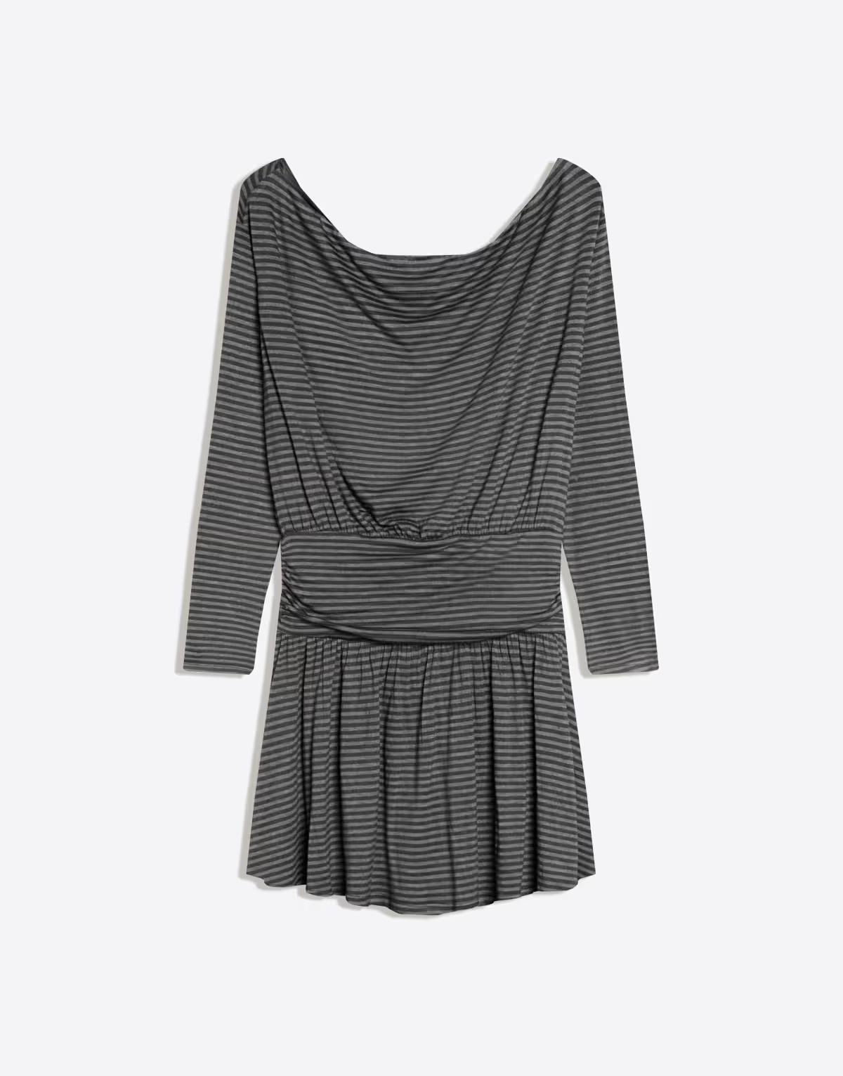 Bershka Printed mini long sleeve dress with sash in grey&black