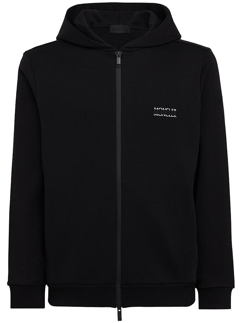 Logo cotton fleece zip-up hoodie - 黑色 - 男士 - Moncler - Crafted from cotton fleece.