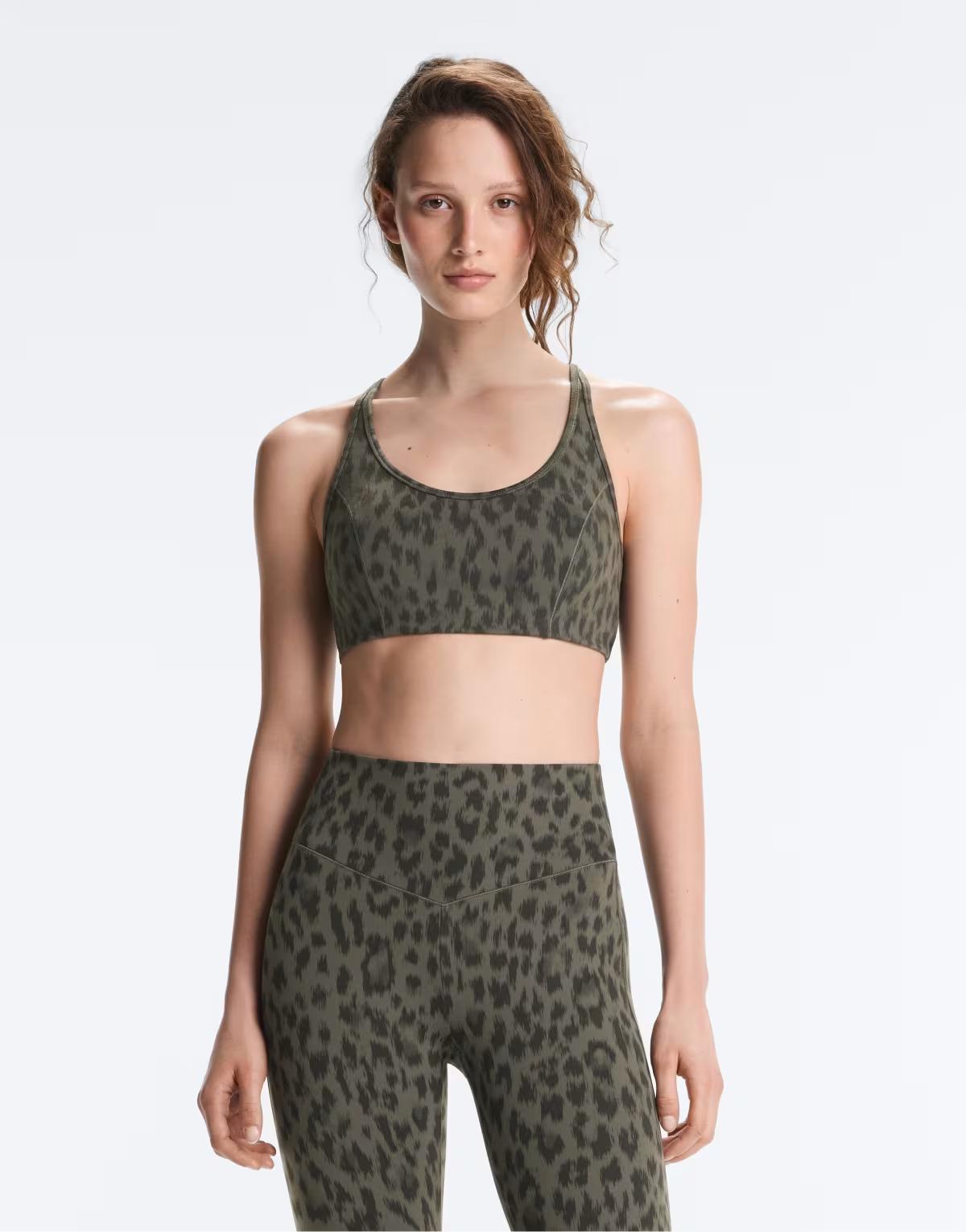 OYSHO Evermove medium-support sports bra in dark khaki