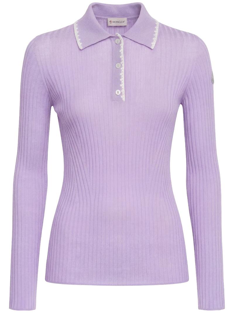 初剪羊毛长袖polo衫 - 丁香紫 - 女士 - Moncler - 美利奴羊毛面料制作.