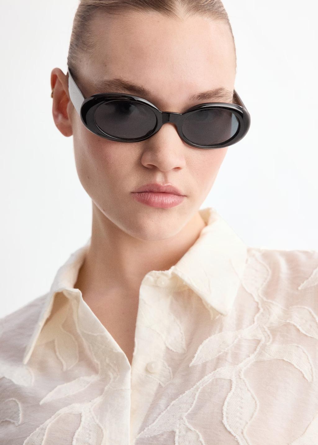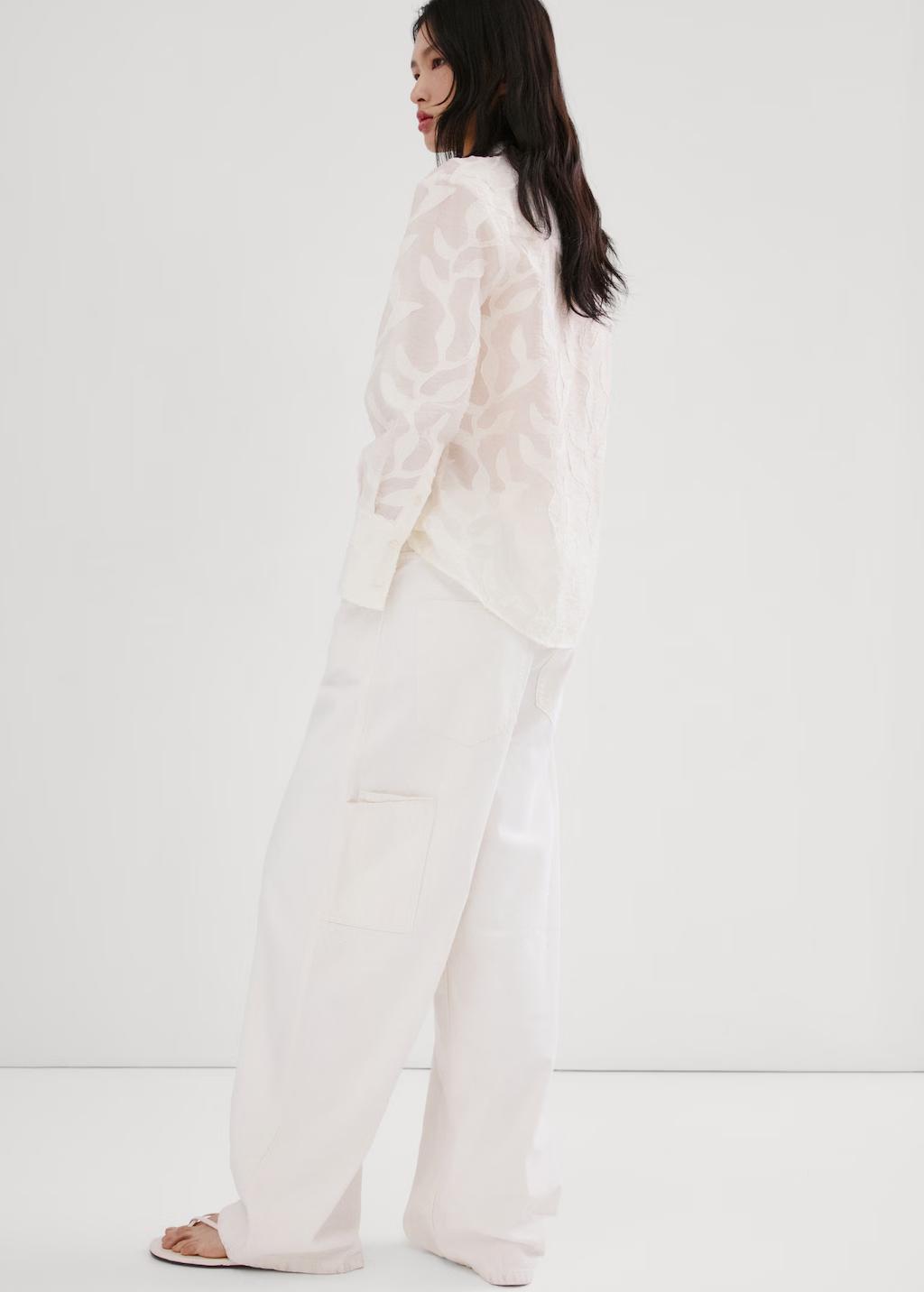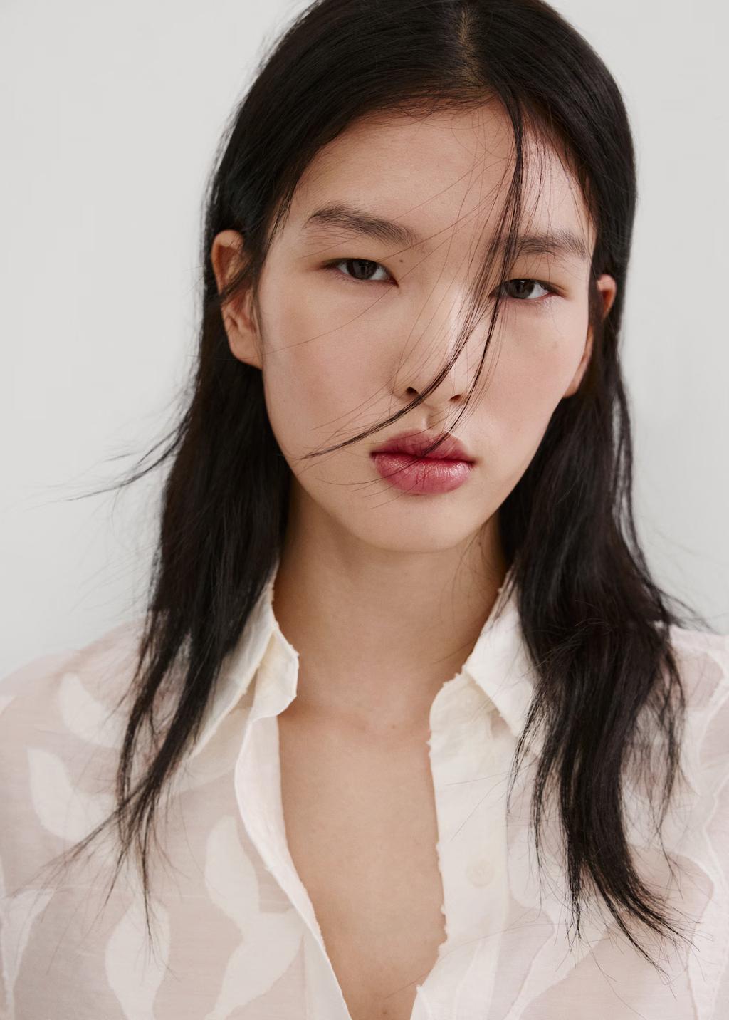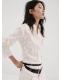 Diseño recto. Diseño bordado floral. Cuello camisero. Manga larga con puños abotonados. Cierre delantero con botones. Disponible Plus