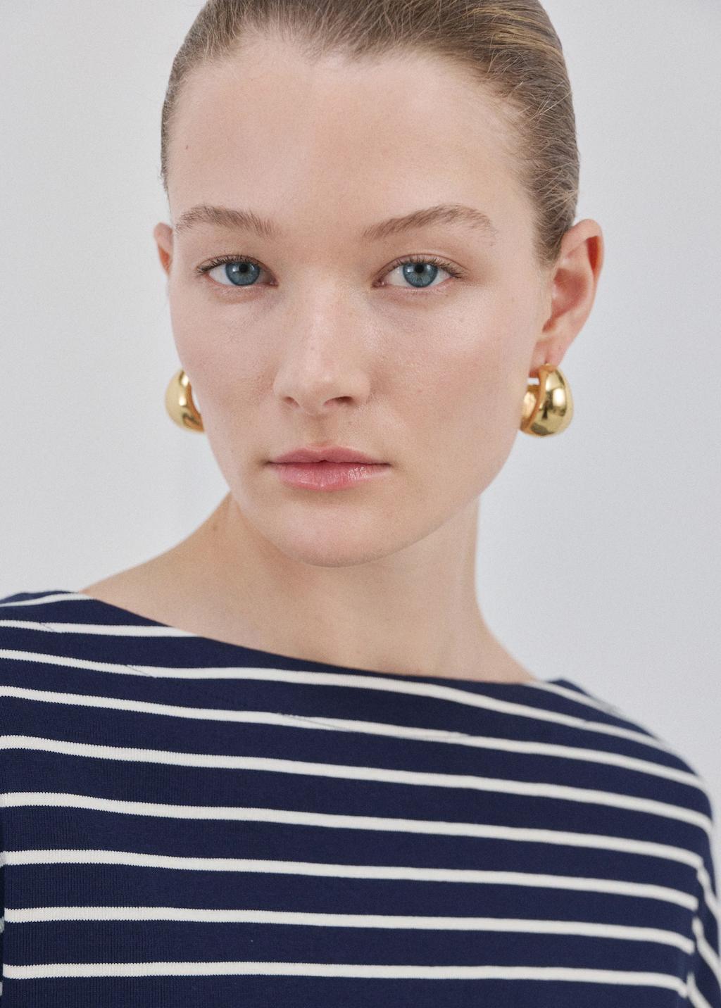 Tejido 100% algodón. Estampado Rayas. Diseño recto. Cuello barco. Manga larga. Sin cierre