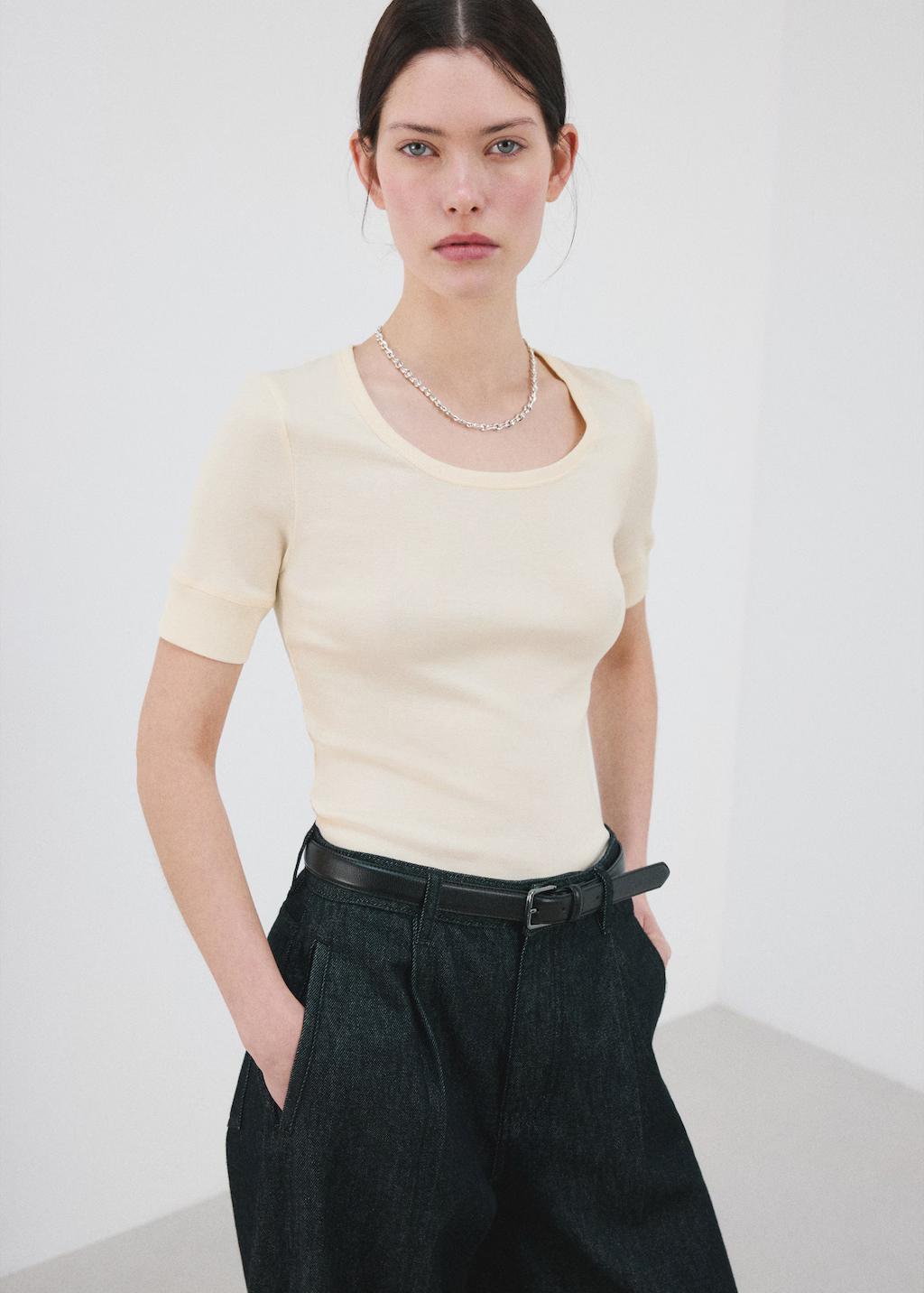 Tejido 100% algodón. Tejido semitransparente. Diseño entallado. Cuello redondo. Manga corta. Sin cierre