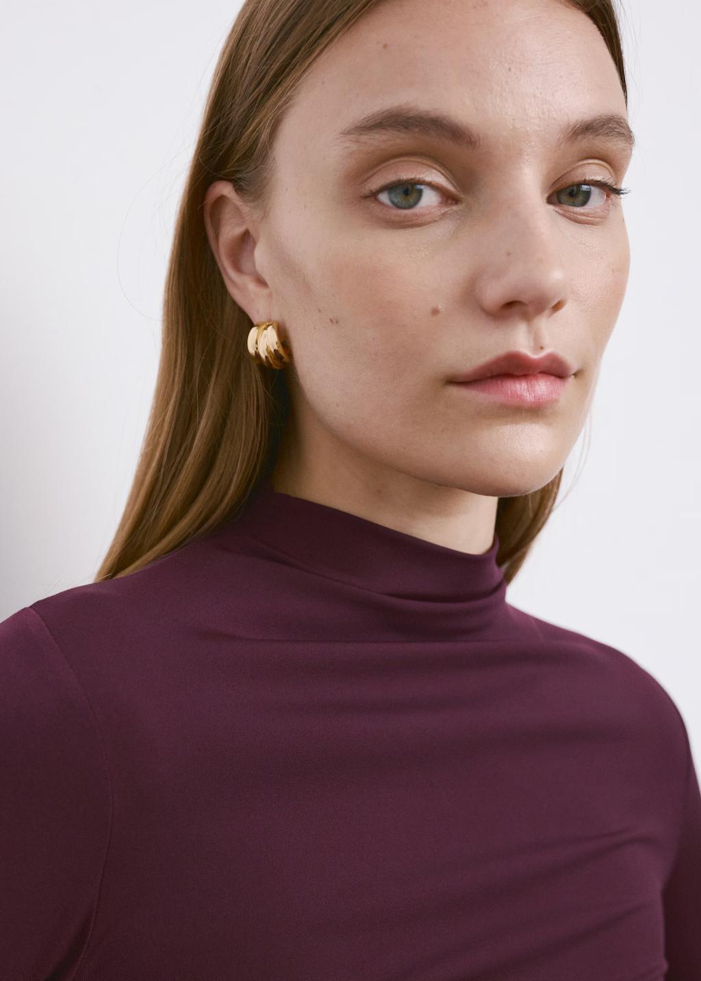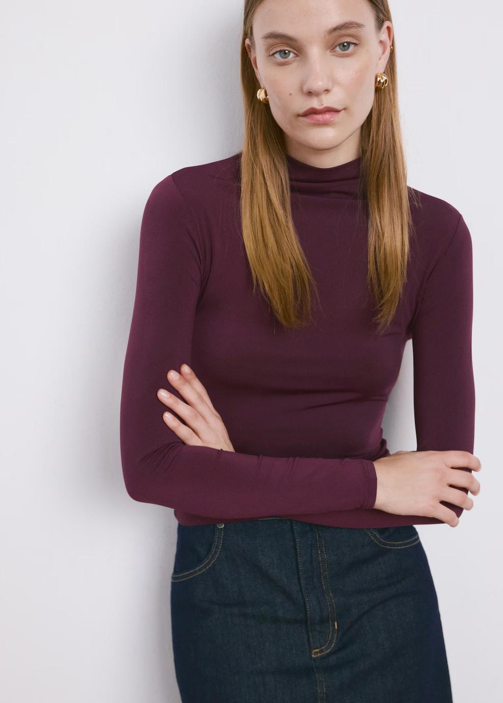 Diseño entallado. Cuello perkins. Manga larga. Sin cierre