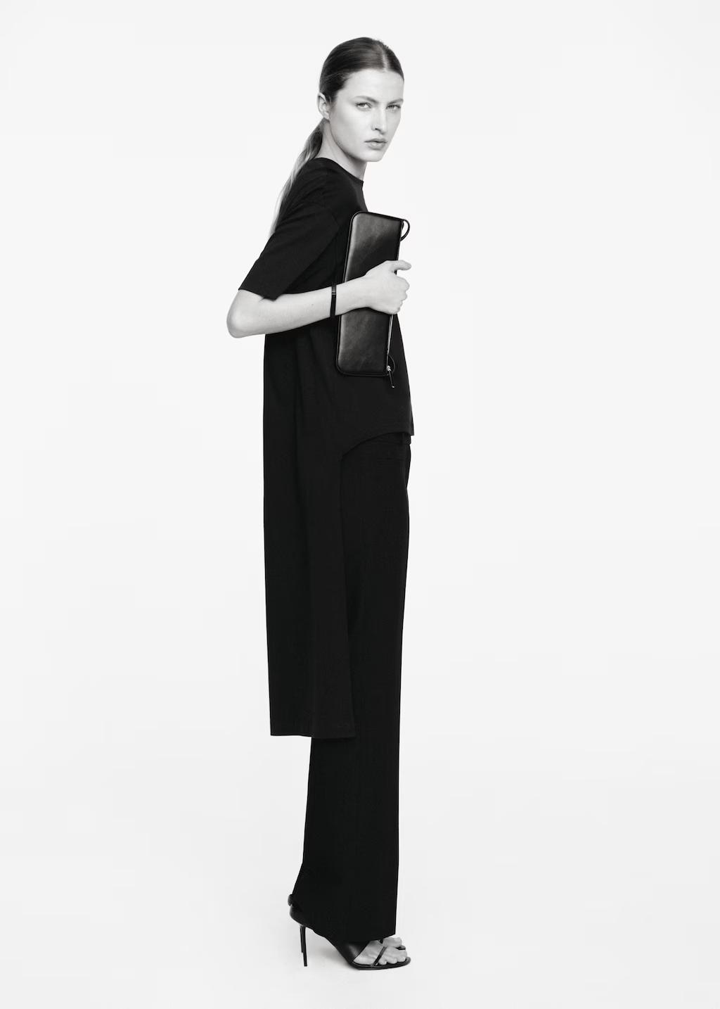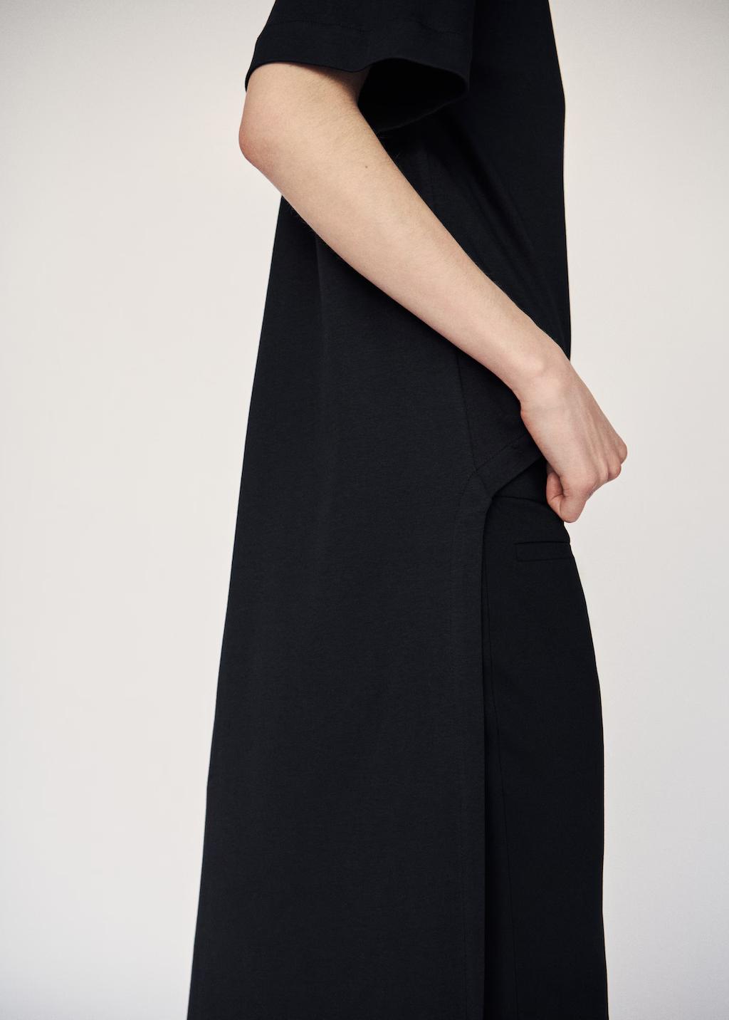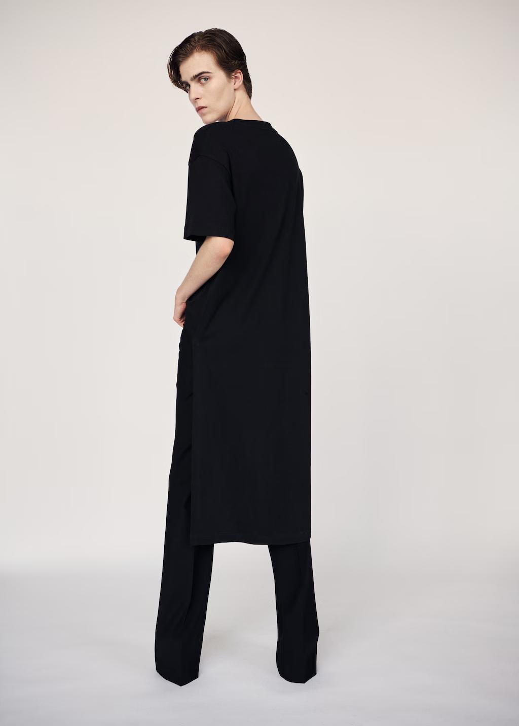 Tejido 100% algodón. Diseño largo. Diseño asimétrico. Diseño oversize. Cuello redondo. Diseño combinado. Manga corta. Sin cierre