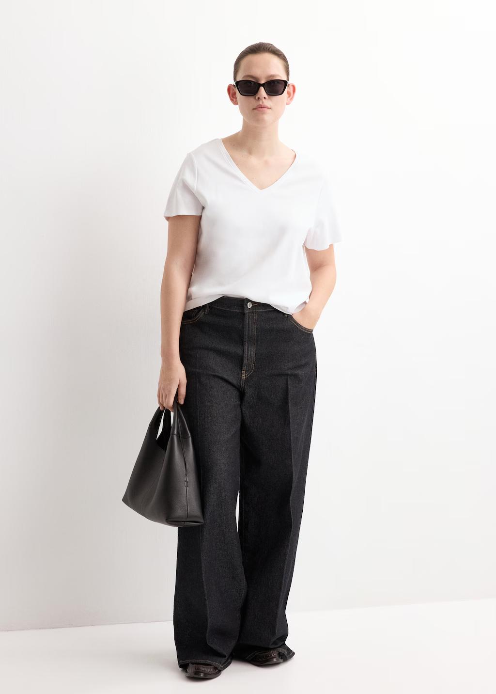Camiseta algodón cuello pico