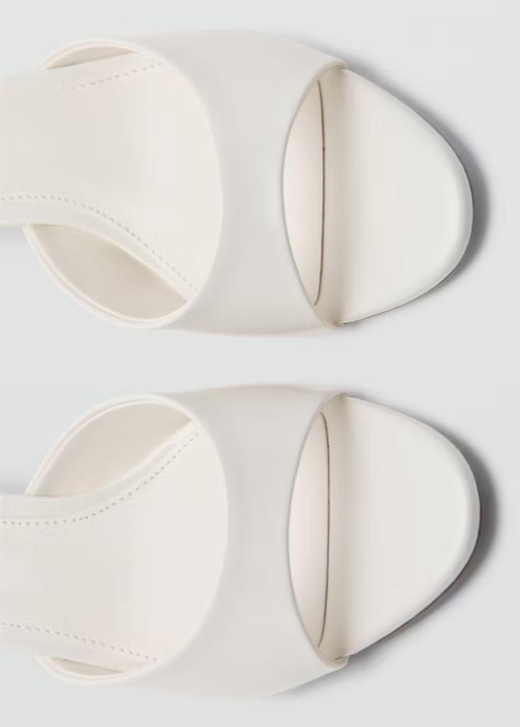 Diseño destalonado. Diseño de tira. Puntera abierta. Tacón kitten. El tacón mide 4,5 cm