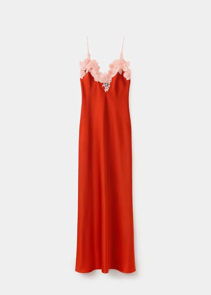 Este vestido destaca por su tejido satinado con un brillo sutil que envuelve la silueta con una caída impecable. El diseño se eleva con una puntilla colocada a mano, un gesto artesanal que aporta profundidad y textura, realzando la pieza con una sofisticación única. Tejido satinado. Diseño entallado. Diseño largo. Escote de pico. Detalle de puntilla con apliques 3D. Sin mangas. Tirante fino. Sin cierre. Esta prenda pertenece a nuestra colección de fiesta y evento, diseñada para elevar tus looks en ocasiones especiales. Los artículos de la colección CAPSULE se pueden cambiar o devolver en un plazo de 14 días desde la fecha de envío. Capsule: una colección de prendas de edición limitada, hechas con los mejores tejidos y los máximos cuidados en el patronaje, para conseguir los mejores acabados. Esta colección, de carácter exclusivo, está pensada para los eventos y ocasiones más especiales