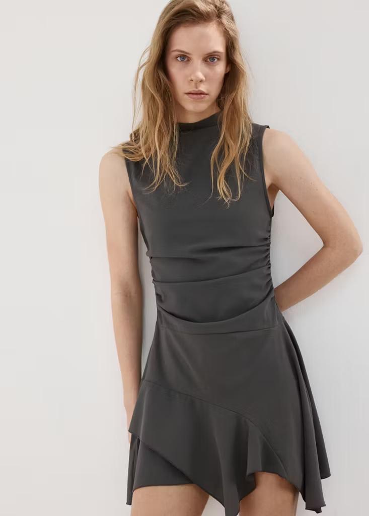 Vestido corto fruncido bajo volantes