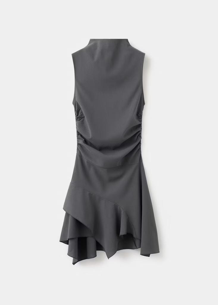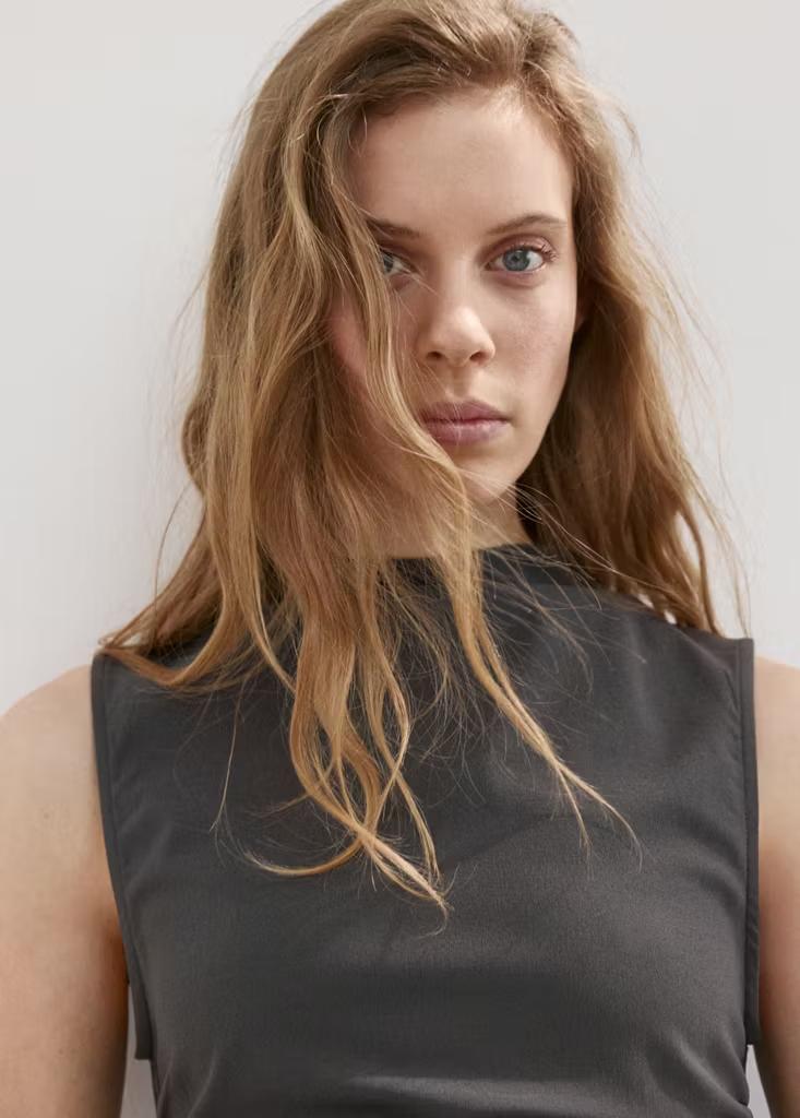 Diseño corto. Diseño entallado. Cuello alto. Sin mangas. Panel fruncido en la cintura. Exclusivo Online