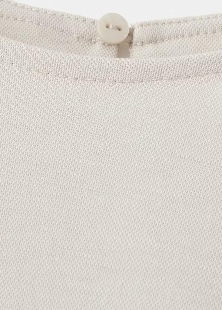 Diseño recto. Diseño largo. Detalles fruncidos. Cuello redondo. Manga corta. Abertura en el bajo. Sin cierre. Tejido con elasticidad