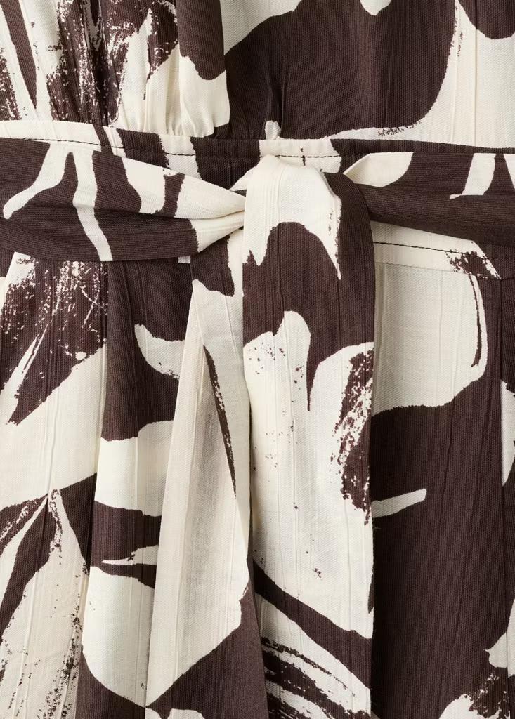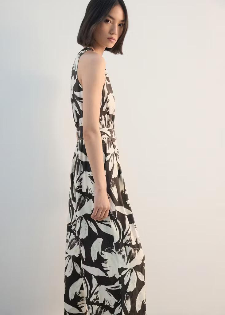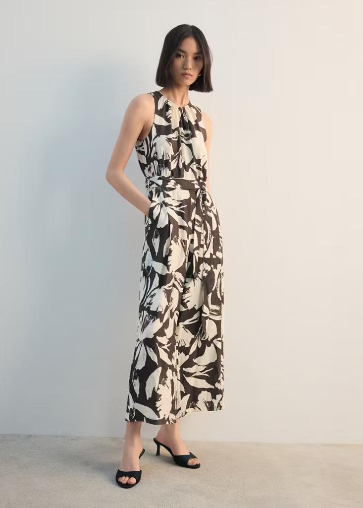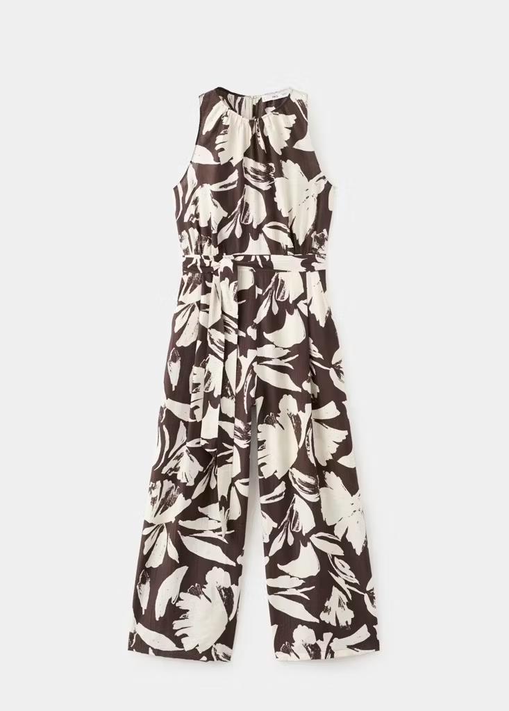 Diseño crop. Diseño recto. Estampado floral. Cuello redondo. Sin mangas. Cinturón tipo lazo en la cintura. Dos bolsillos laterales. Cierre de cremallera en la parte posterior. Cierre de botón en el cuello