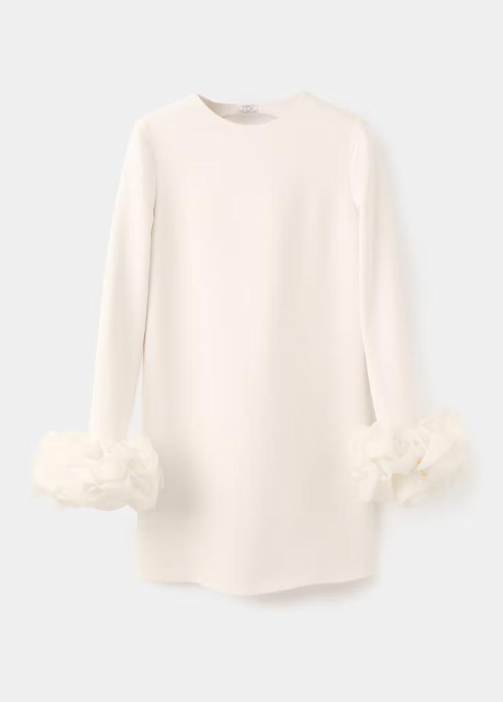 Este vestido es una elección perfecta para quienes buscan un look que combine tradición y modernidad. Con cada movimiento, el vestido captura la esencia de la elegancia atemporal, aportando un toque sensual inesperado con su espalda descubierta. Tejido de crepé. Diseño recto. Diseño corto. Cuello redondo. Mangas 100% seda. Manga larga. Aplique de flores en las mangas. Espalda abierta. Cierre de cremallera en la parte posterior. Forro interior. Esta prenda pertenece a nuestra colección de fiesta y evento, diseñada para elevar tus looks en ocasiones especiales. Los artículos de la colección CAPSULE se pueden cambiar o devolver en un plazo de 14 días desde la fecha de envío. Capsule: una colección de prendas de edición limitada, hechas con los mejores tejidos y los máximos cuidados en el patronaje, para conseguir los mejores acabados. Esta colección, de carácter exclusivo, está pensada para los eventos y ocasiones más especiales