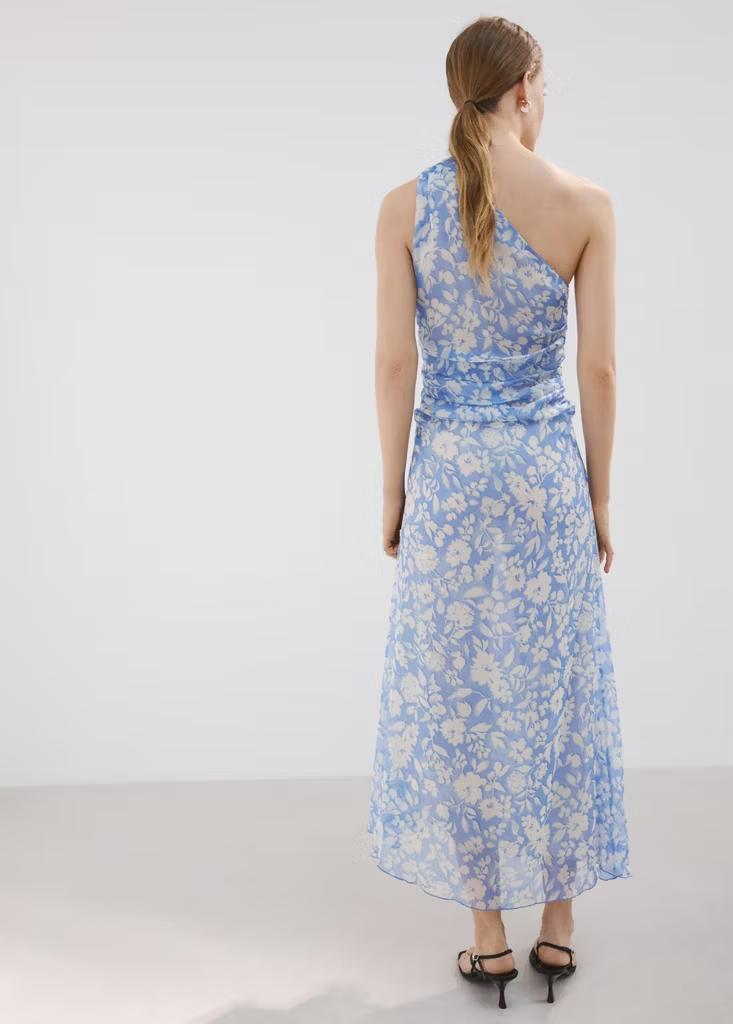Tejido de gasa. Diseño midi. Estampado floral. Cuello asimétrico. Detalle fruncido en la cintura. Cierre lateral. Con forro interior. Bajo asimétrico. Esta prenda pertenece a nuestra colección de fiesta y evento, diseñada para elevar tus looks en ocasiones especiales. Exclusivo Online