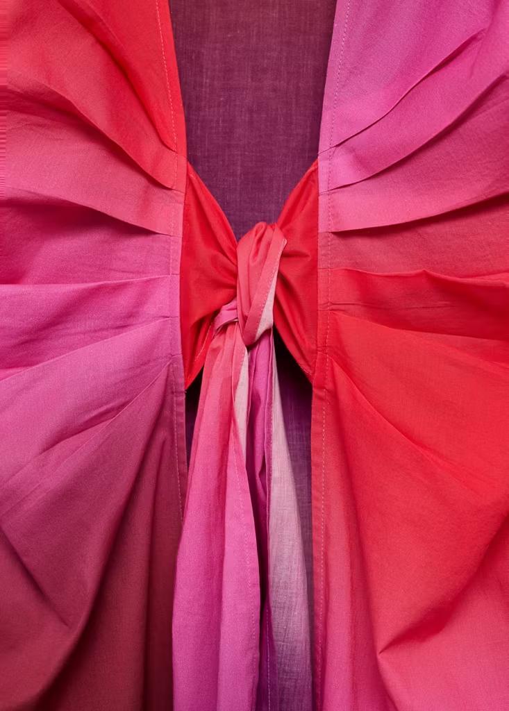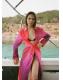 Tejido 100% algodón. Diseño largo. Diseño recto. Diseño tie-dye. Cuello pico con solapa. Manga larga. Cierre de nudo en la parte frontal