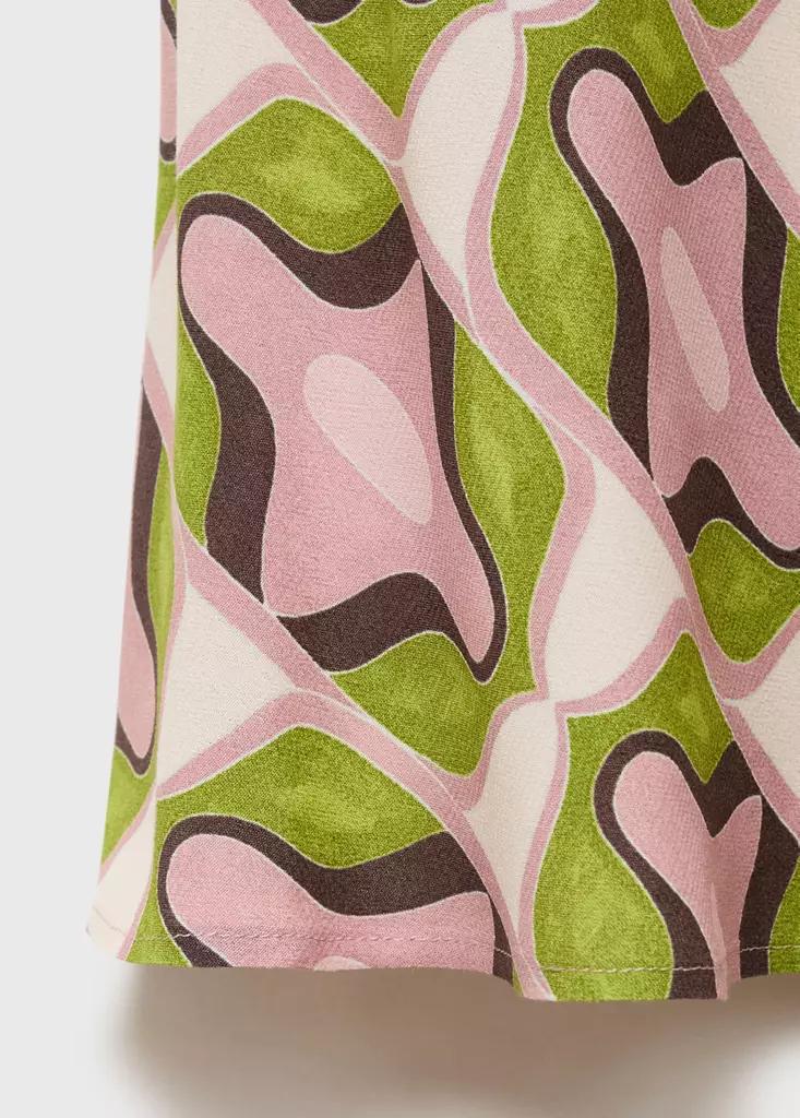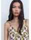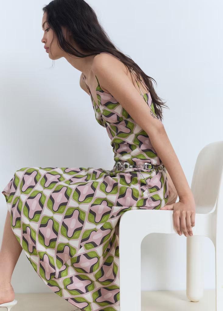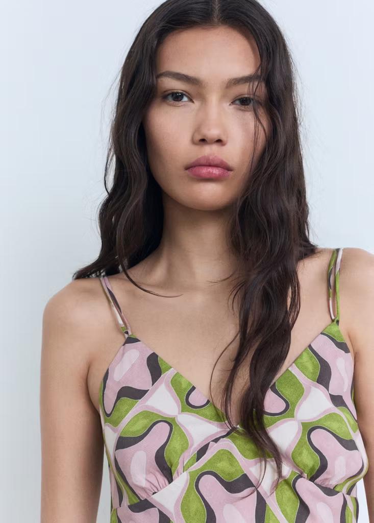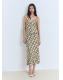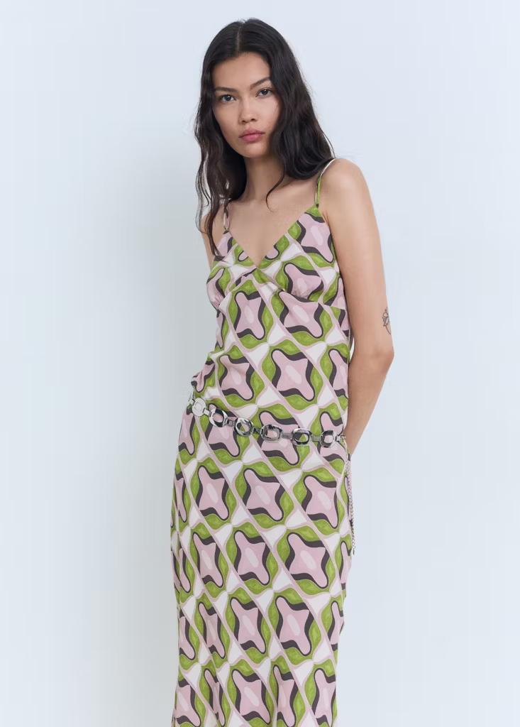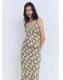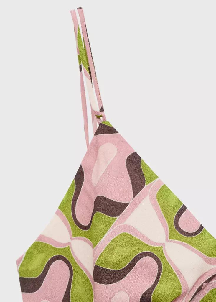Diseño midi. Diseño recto. Estampado abstracto. Cuello de pico. Sin mangas. Tirantes finos. Tirantes ajustables de nudo. Cierre de cremallera lateral