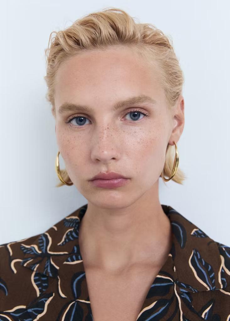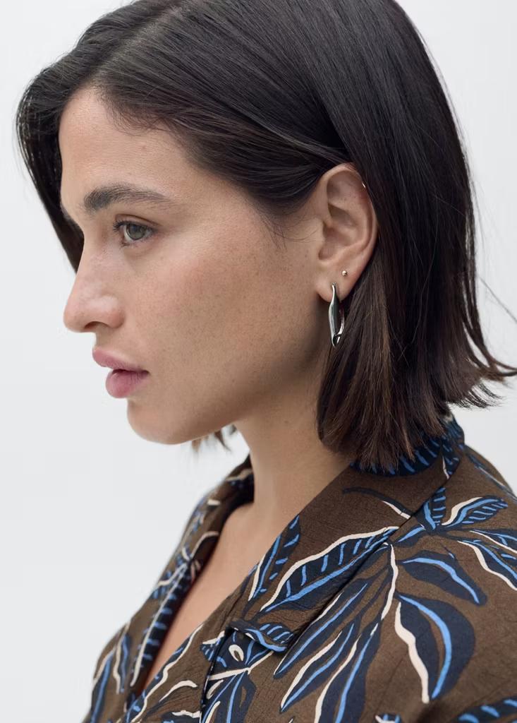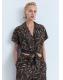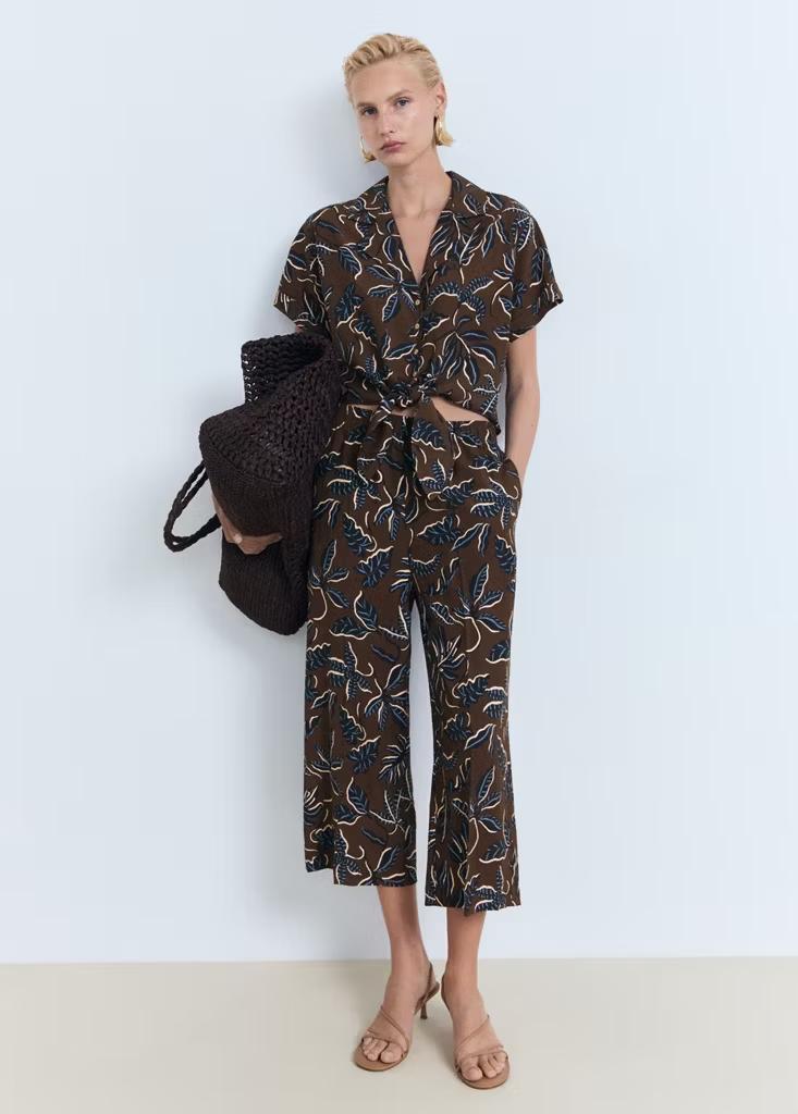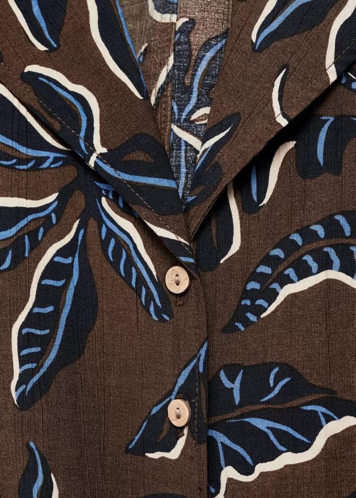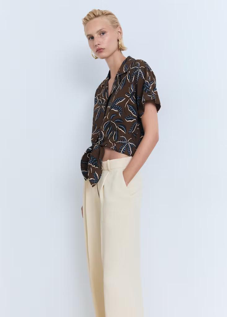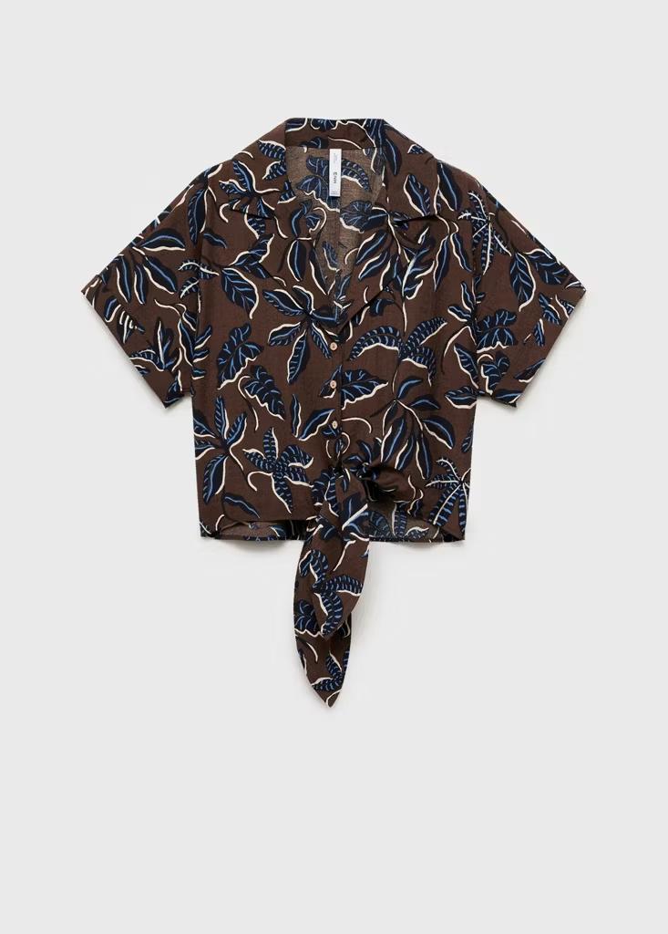 Diseño recto. Diseño crop. Estampado. Cuello camisero. Manga corta. Detalle de nudo en la parte delantera. Cierre delantero con botones. Disponible Plus