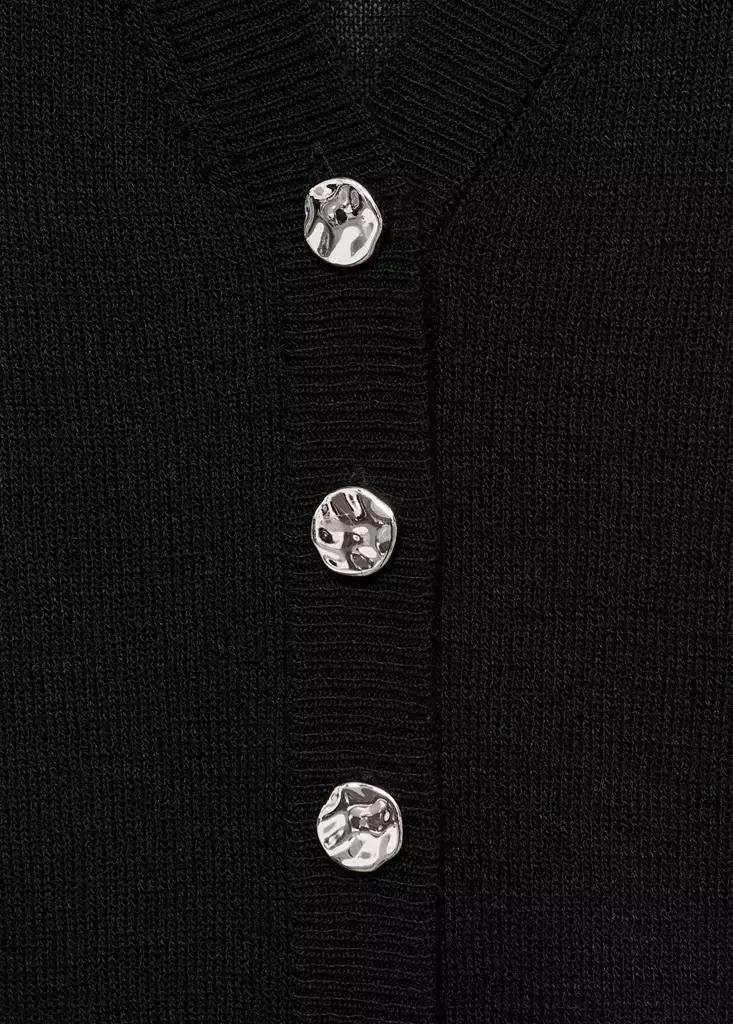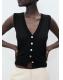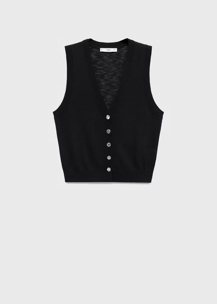 Tejido de punto fino. Diseño recto. Cuello de pico. Sin mangas. Tirantes anchos. Cierre delantero con botones. Total look