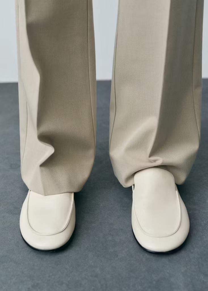 100% piel caprino. Diseño plano. Punta cuadrada. Forro interior