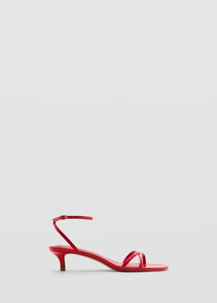 Diseño de tiras cruzadas. Puntera abierta. Tacón kitten. Cierre de tira tobillera con hebilla metálica