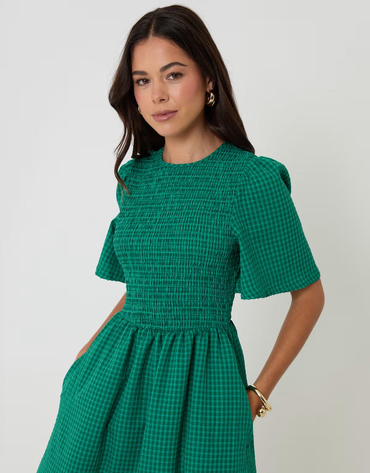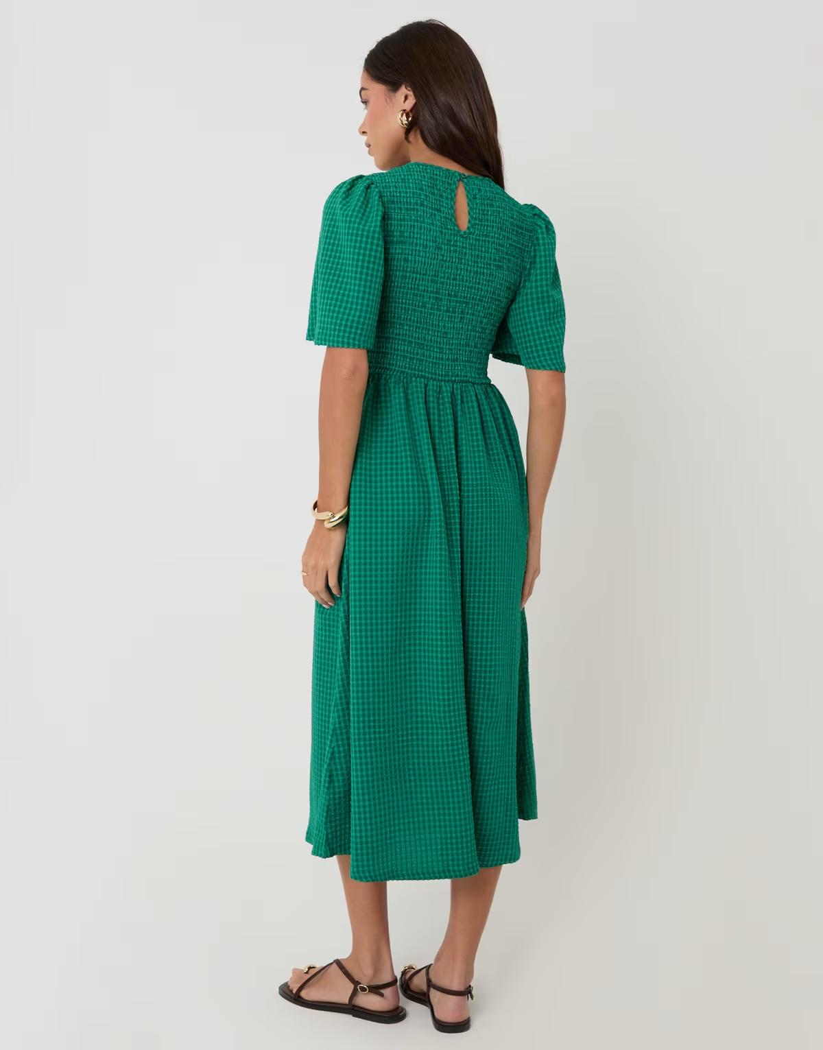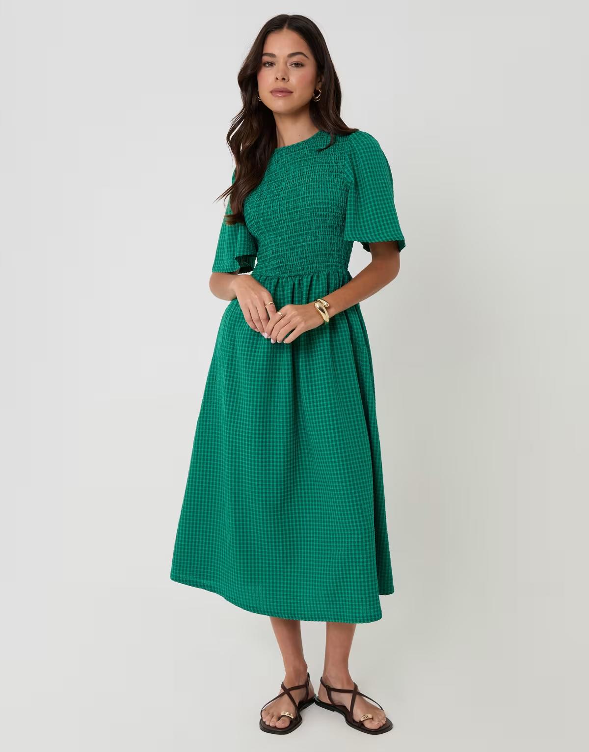 Threadbare Gingham angel sleeve midaxi dress in green