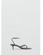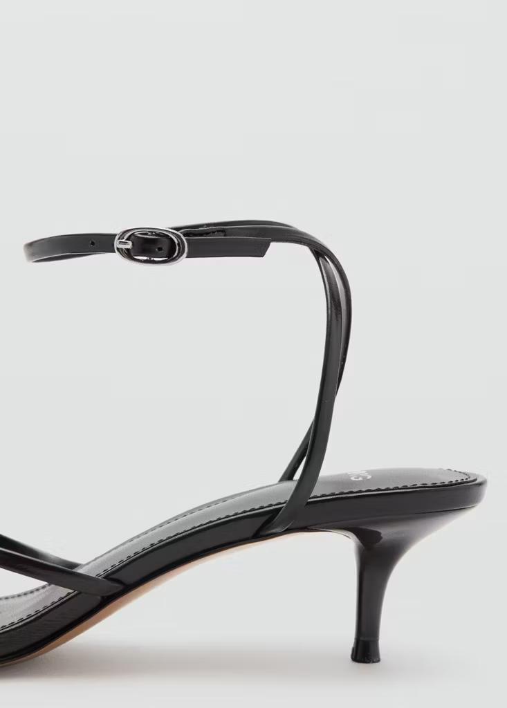 Diseño de tira. Puntera abierta. Tacón kitten. Cierre de tira tobillera con hebilla metálica