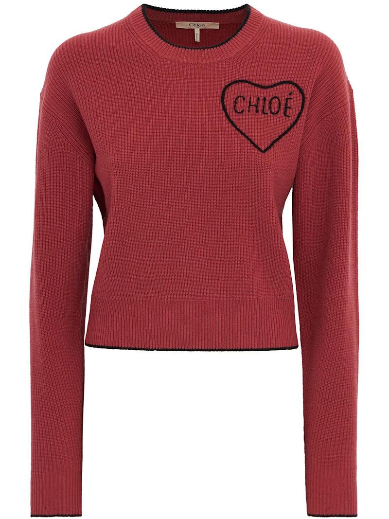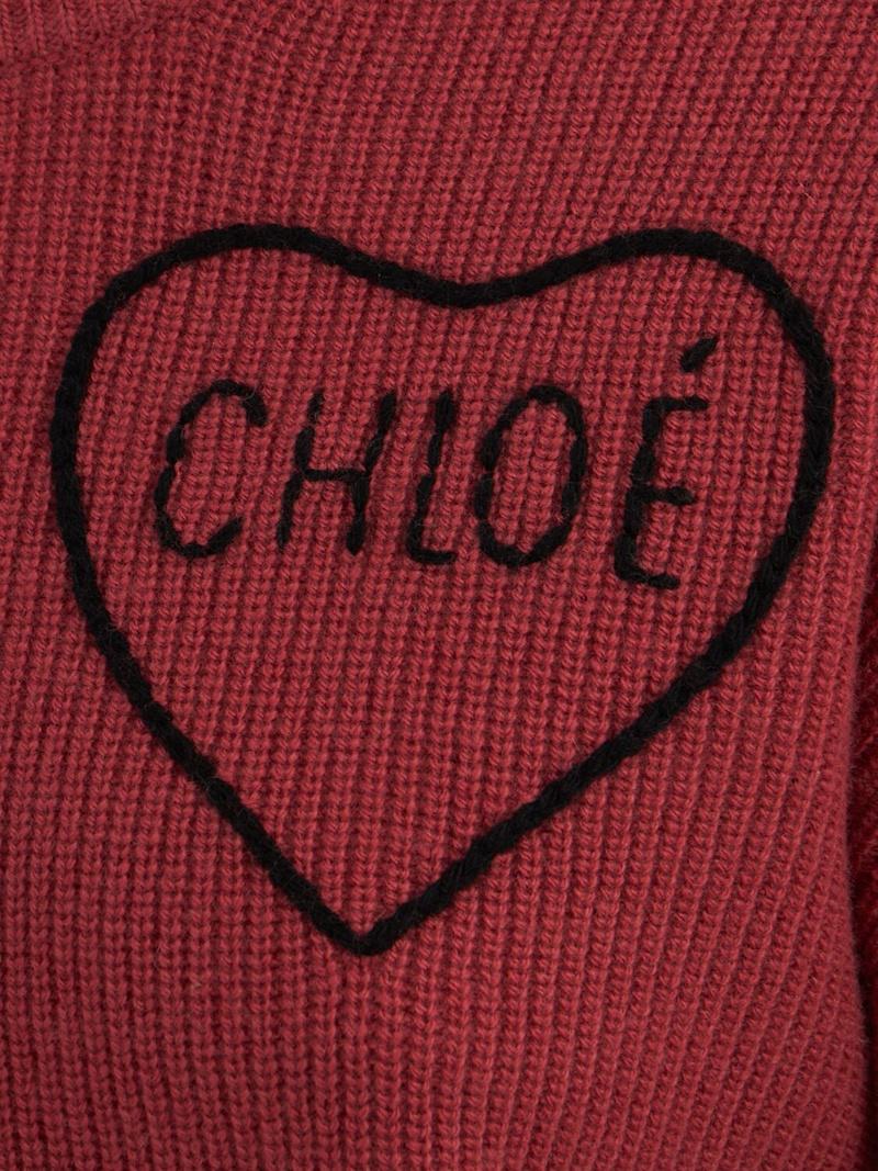 刺绣logo羊毛混纺针织毛衣 - 粉色 - 女士 - Chloé - 罗纹边缘.