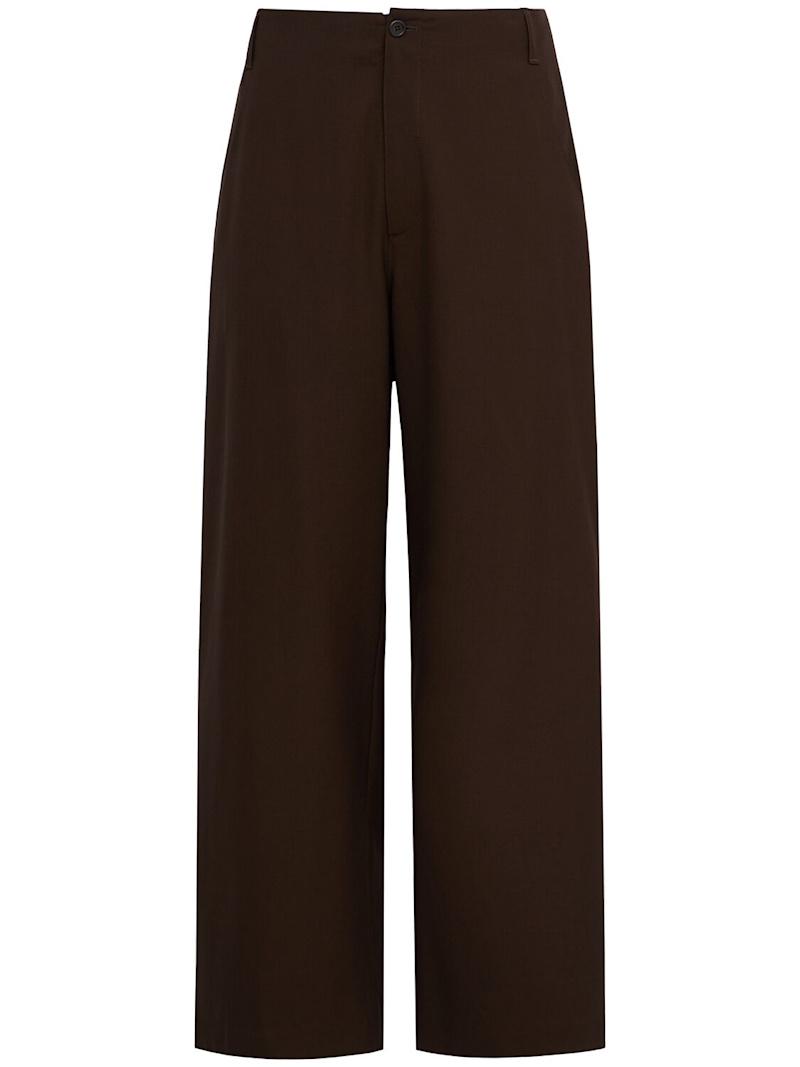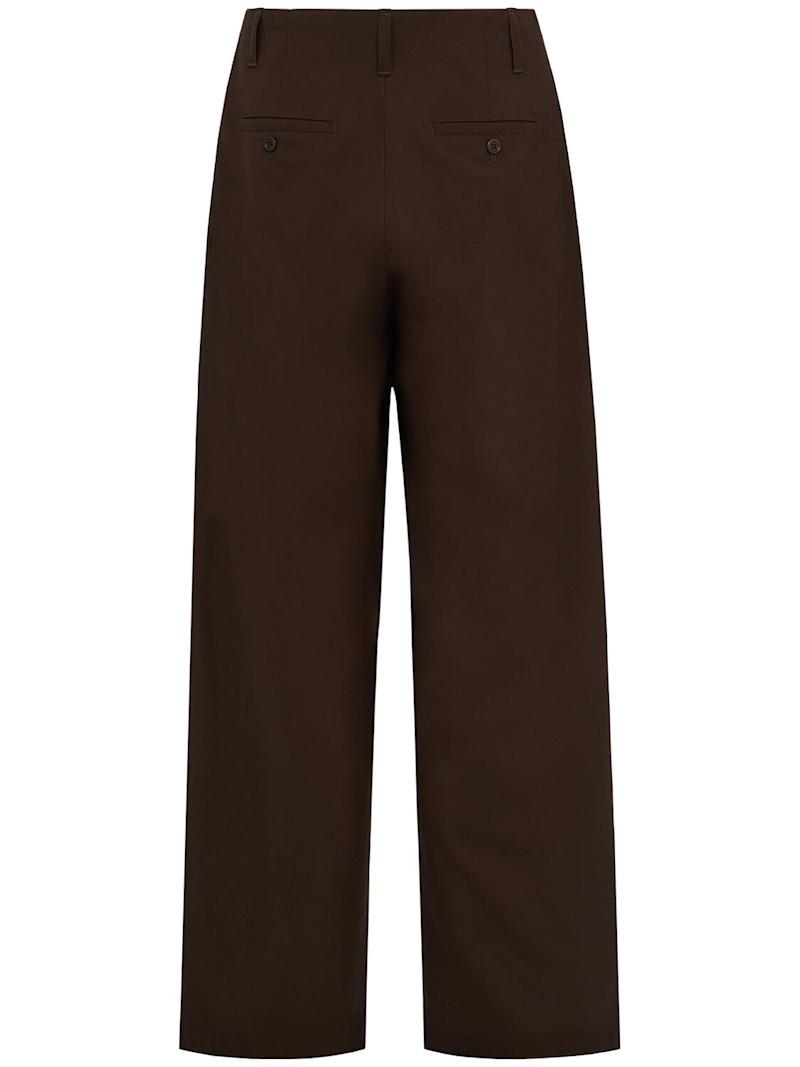 Wool wide pants - 卡其色/棕色 - 男士 - Amomento - Front button and concealed zip closure.
