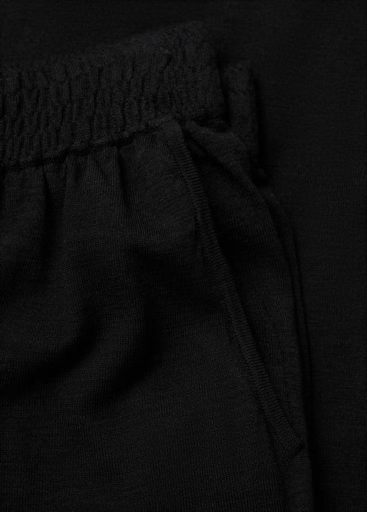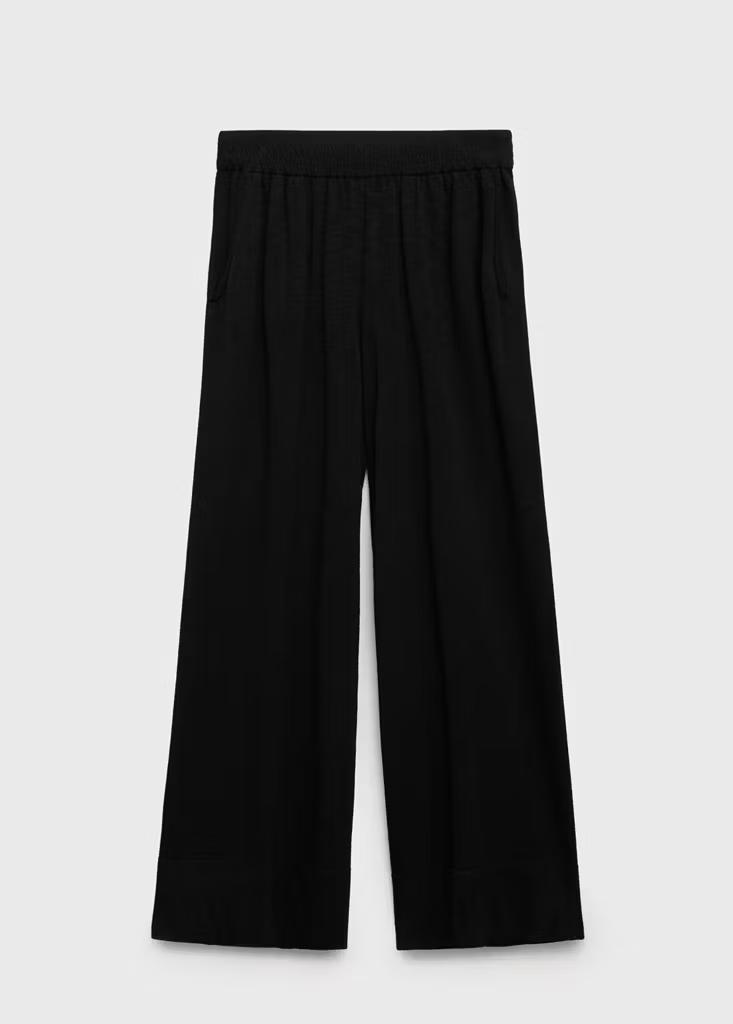 Tejido de punto fino. Diseño largo. Diseño recto. Cintura con goma elástica. Dos bolsillos laterales. Sin cierre. Total look