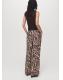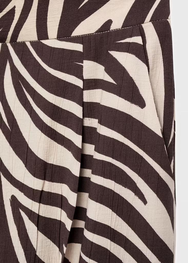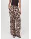 Diseño largo. Diseño recto. Estampado animal print. Estampado de cebra. Tiro medio. Dos bolsillos laterales. Cierre delantero de botón, gancho y cremallera