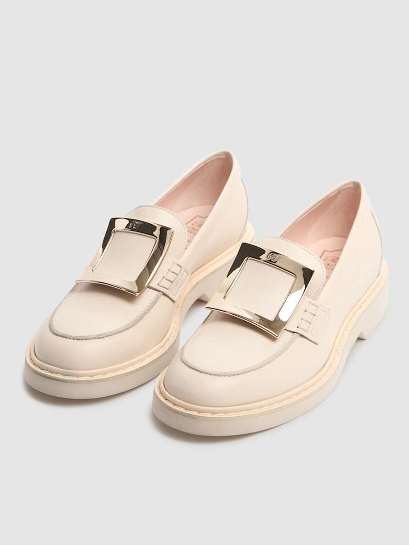25毫米Viv Rangers皮革乐福鞋 - 米白色 - 女士 - Roger Vivier - 25毫米橡胶鞋底.