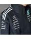 Regular fit","Full zip with stand-up collar","100% polyester (recycled)","Front pockets","Hood packs into collar","Hook-and-loop adjustable cuffs","Mercedes - AMG Petronas Formula One Team logo","Petronas on back"