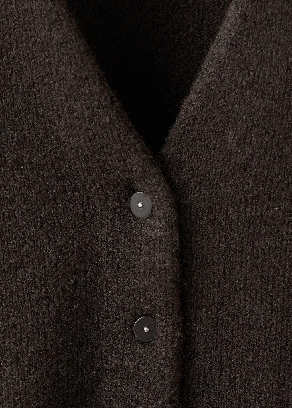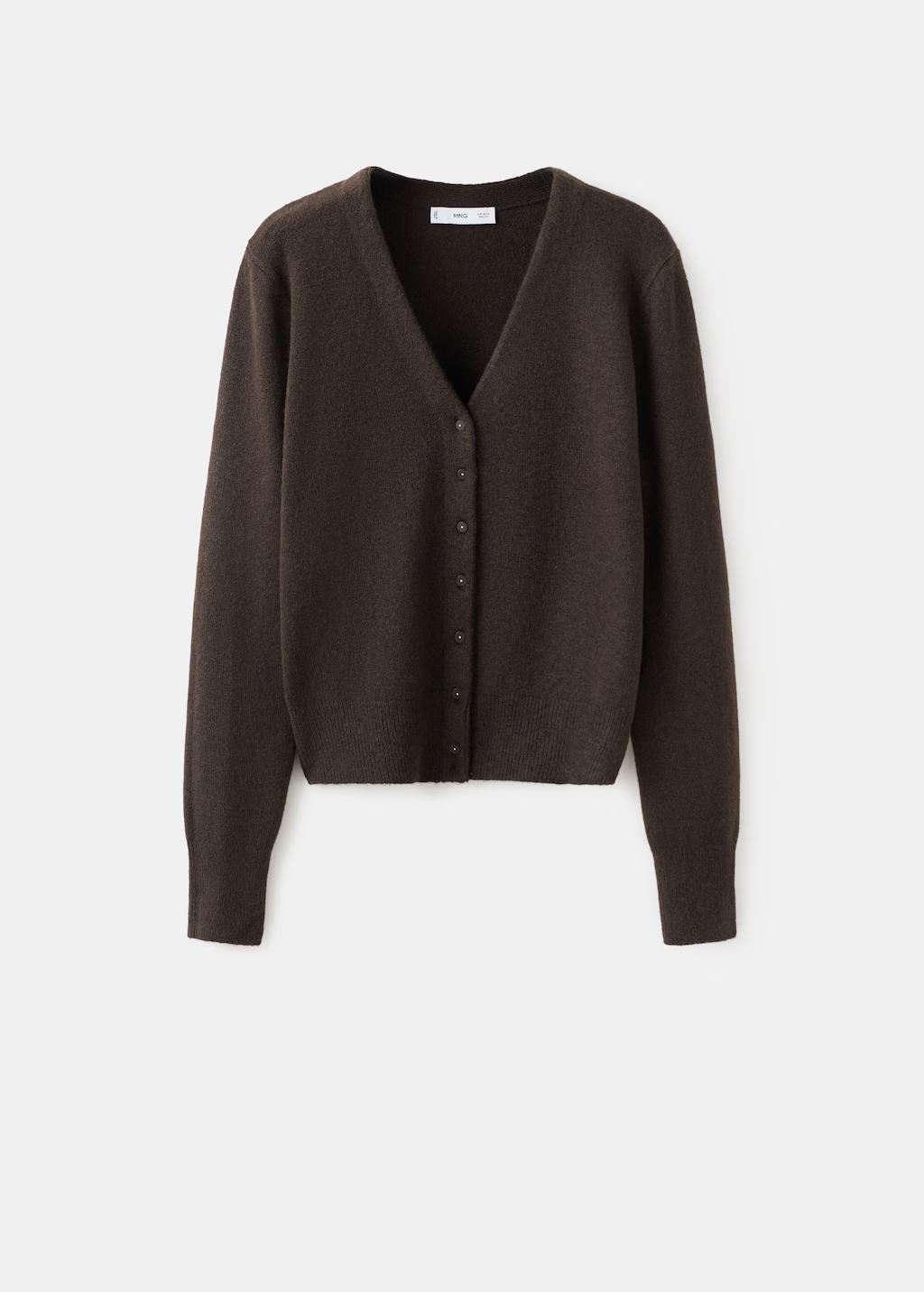 Tejido de punto fino. Diseño recto. Cuello pico. Manga larga. Cierre delantero con botones. Disponible Plus