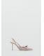 Efecto charol. Diseño destalonado. Detalle de lazo. Con punta. Tacón de aguja. El tacón mide 9 cm. Cierre de hebilla. Forro interior