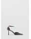 Efecto charol. Con punta. Tacón de aguja. Cierre de tira tobillera con hebilla metálica. El tacón mide 7,5 cm