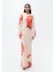 Tejido satinado. Tejido fluido. Diseño evasé. Estampado floral. Cuello redondo. Manga larga acampanada. Abertura posterior en el cuello. Cierre de botón en la parte posterior. Colección fiesta, ceremonia y comunión. Ramadan Collection. Esta prenda pertenece a nuestra colección de evento, diseñada para convertirte en la invitada perfecta en cualquier fiesta, boda o ceremonia