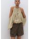 Tejido mezcla lyocell. Diseño crop. Cuello redondo. Manga larga abullonada. Hombros descubiertos. Espalda abierta. Cierre de lazo en el cuello