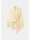 Tejido de algodón. Diseño recto. Diseño largo. Estampado de rayas. Cuello camisero. Detalle de nudo en la cintura. Manga larga abotonada con puños a contraste. Cierre delantero con botones