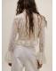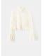 Diseño recto. Tejido de tul. Cuello drapeado. Manga larga con volante en los puños. Bajo con volante. Cierre de botón en el cuello