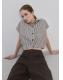 Diseño recto. Diseño crop. Estampado Rayas. Manga corta. Cuello camisero. Cierre de botones en la parte delantera
