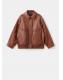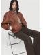 100% piel ovino. Diseño oversize. Cuello camisero. Manga larga con puños abotonados. Dos bolsillos de ribete laterales. Bajo fruncido elástico. Cierre delantero de cremallera y botones a presión oculto con tapeta. Forro interior