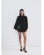 Tejido de algodón. Diseño recto. Detalles bordados calados. Cuello de tira. Manga larga. Cierre delantero con botones