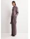 Tejido fluido. Tejido satinado. Diseño largo. Cuello de tira. Manga larga con puños abotonados. Cierre delantero de botones oculto con tapeta. Detalle botón metálico en el cuello. Total look. Esta prenda pertenece a nuestra colección de fiesta y evento, diseñada para elevar tus looks en ocasiones especiales