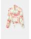 Tejido 100% algodón. Diseño crop. Estampado floral. Cuello camisero. Manga larga con puños abotonados. Detalle de nudo en la cintura. Cierre delantero con botones. Total look