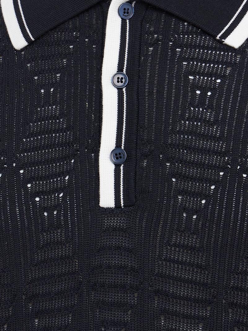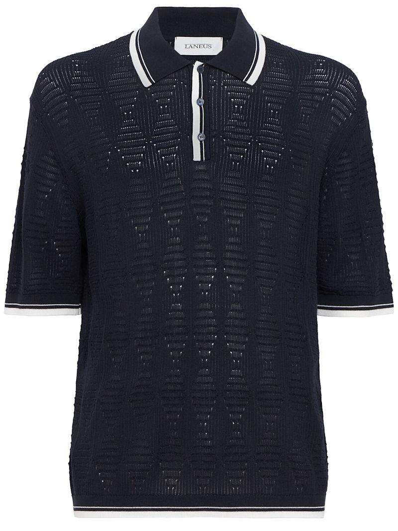 Knitted cotton polo shirt - 蓝色/海军蓝 - 男士 - Laneus - Ribbed collar, cuffs and hem.