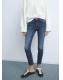 Tejido de algodón estilo tejano vaquero. Diseño crop. Corte skinny. Tiro medio. Trabillas. Cinco bolsillos. Cierre delantero de cremallera y botón. Disponible Plus. Exclusivo Online. Largo interior 72 cm
