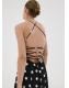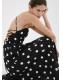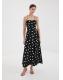 Tejido mezcla de lino y lyocell. Diseño evasé. Diseño largo. Estampado de lunares. Cuello halter. Sin mangas. Cierre de cremallera en la parte posterior. Cierre de lazo en la espalda. Total look. Forro interior