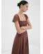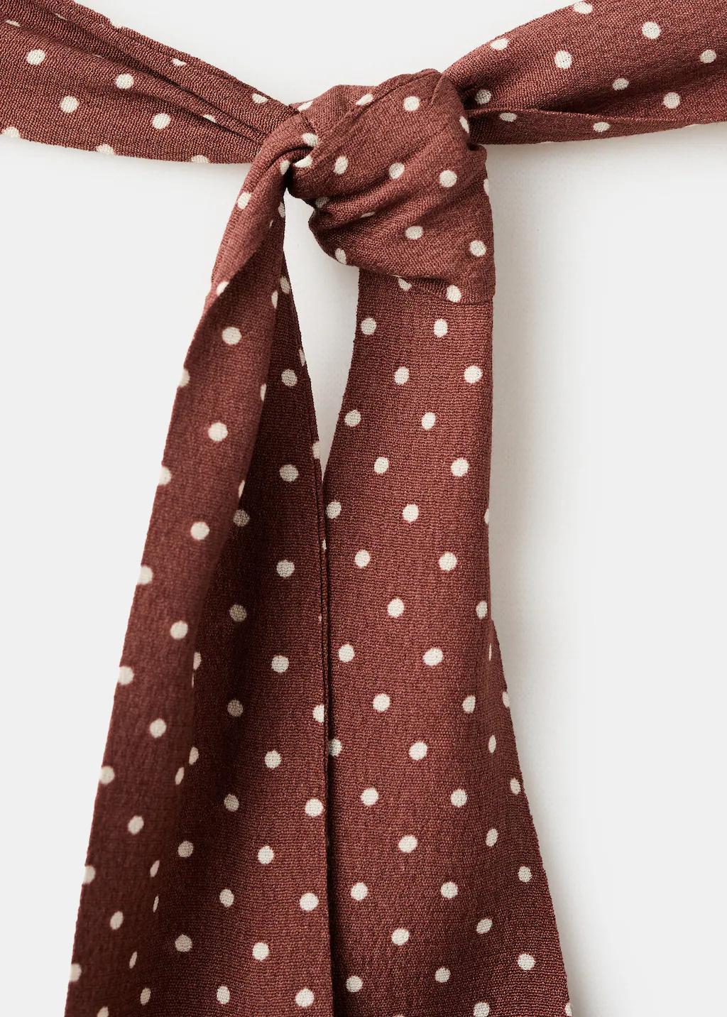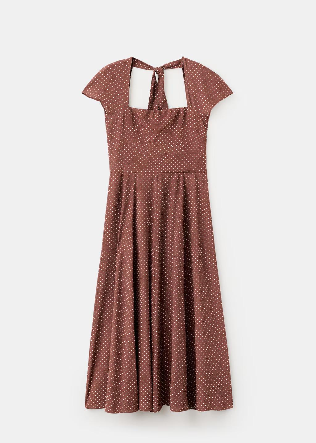 Diseño midi. Diseño evasé. Estampado de lunares. Escote recto. Manga corta. Cierre de lazo en la parte posterior