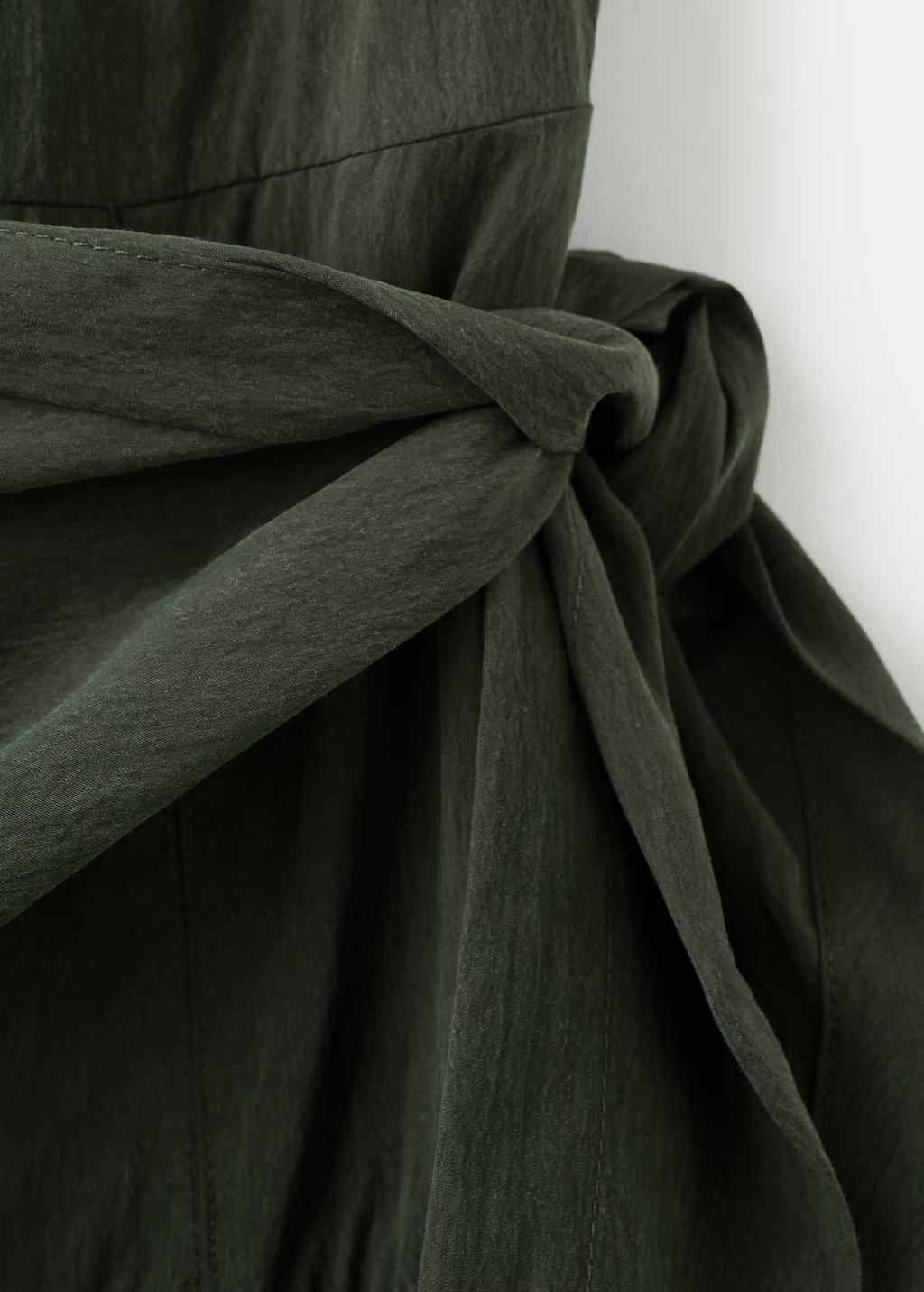 Tejido mezcla lyocell. Diseño midi. Diseño evasé. Cuello redondo. Sin mangas. Tirante ancho. Detalle de pañuelo en la cintura. Cierre de cremallera lateral. Disponible Plus