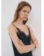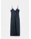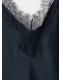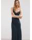 Tejido satinado. Diseño largo. Diseño entallado. Cuello pico. Panel de encaje en el cuello. Sin mangas. Tirantes finos. Sin cierre. Forro interior